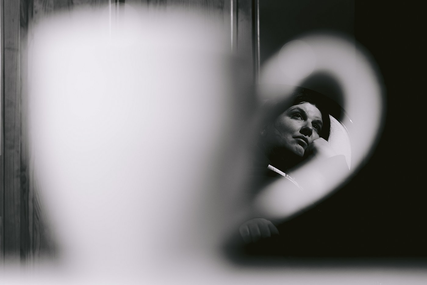 Pour que la mariée soit bien visible malgré la fenêtre et ses reflets, nous allons devoir déclencher au flash dans la pièce des préparatifs.