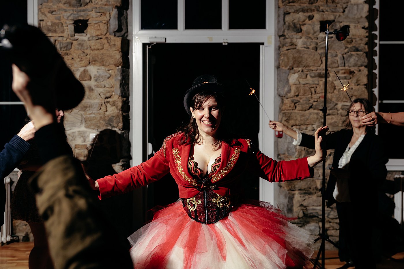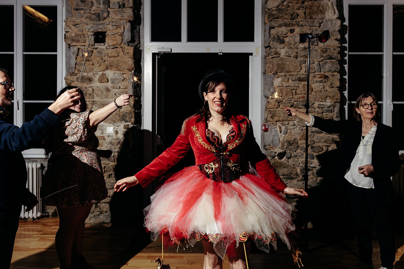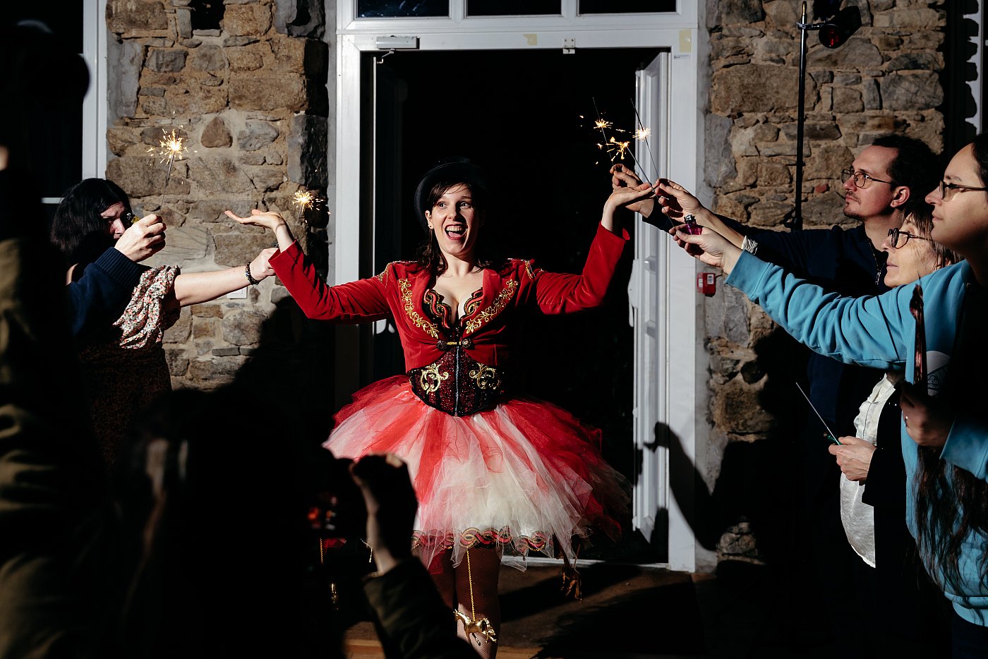 La fameuse entrée des mariés pendant que les invités agitent une baguette de feu de Bengale fera office de dernière scène à éclairer au flash de la soirée.