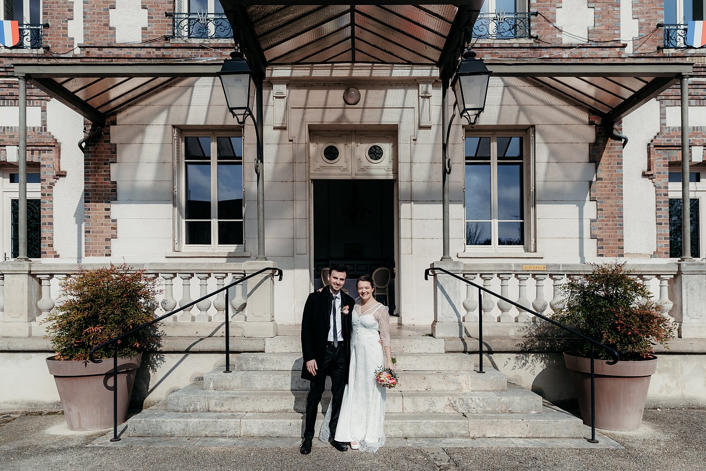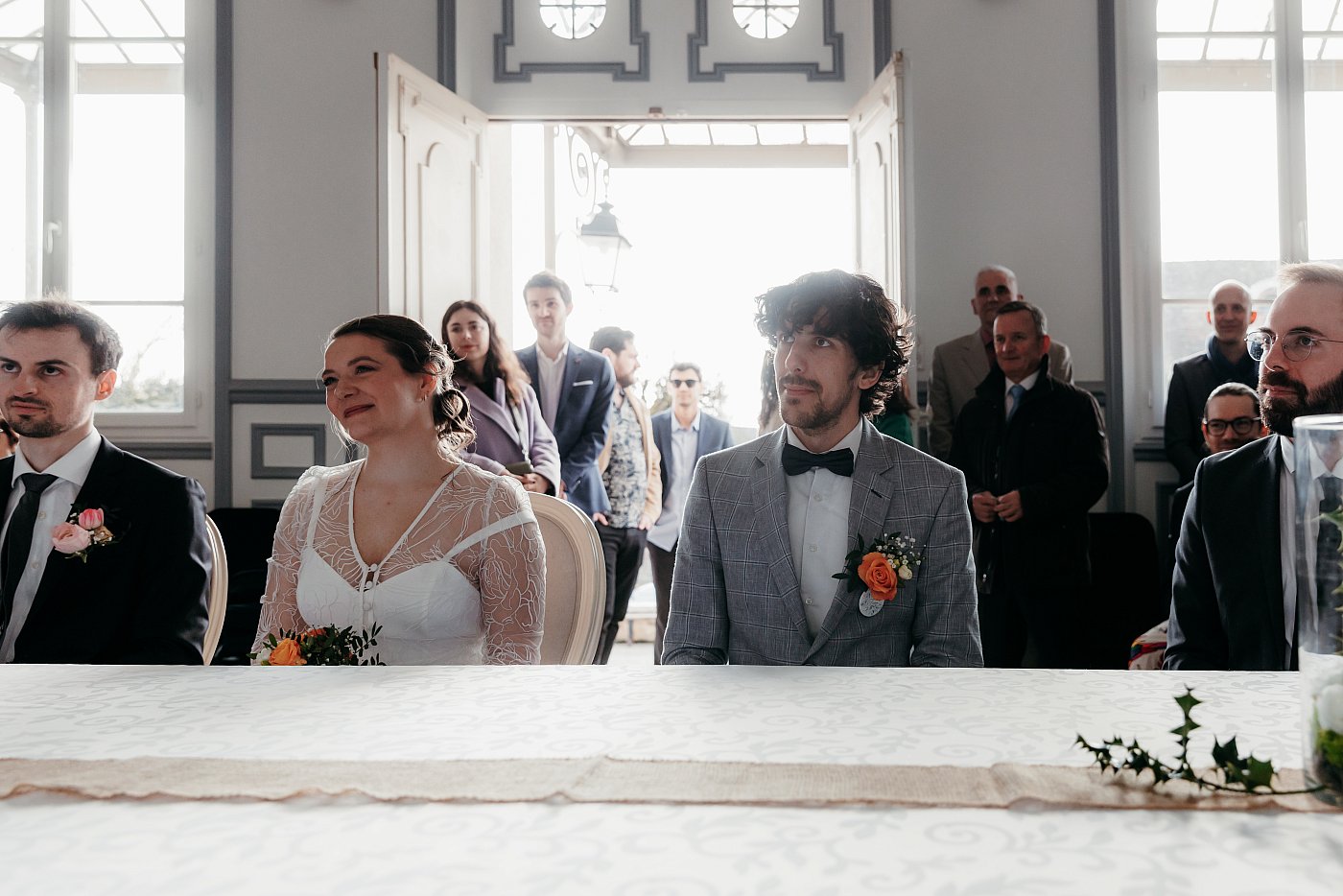 Il va s'agir de ne pas se prendre les pieds dans la marche qui sépare l'entrée de la mairie de l'extérieur, ne rigolez pas ça m'est déjà arrivé 😂. Je me suis retrouvé les fesses par terre après avoir trébuché devant l'assemblée juste après l'entrée des mariés : la HON-TE 😅.