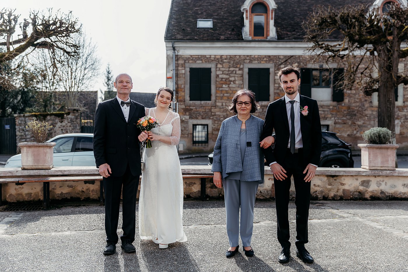 Ce sont donc les invités qui vont prendre place en premier à l'intérieur du joli bâtiment. Pour ma part, je reste sur le parvis en compagnie des mariés et de leurs parents.