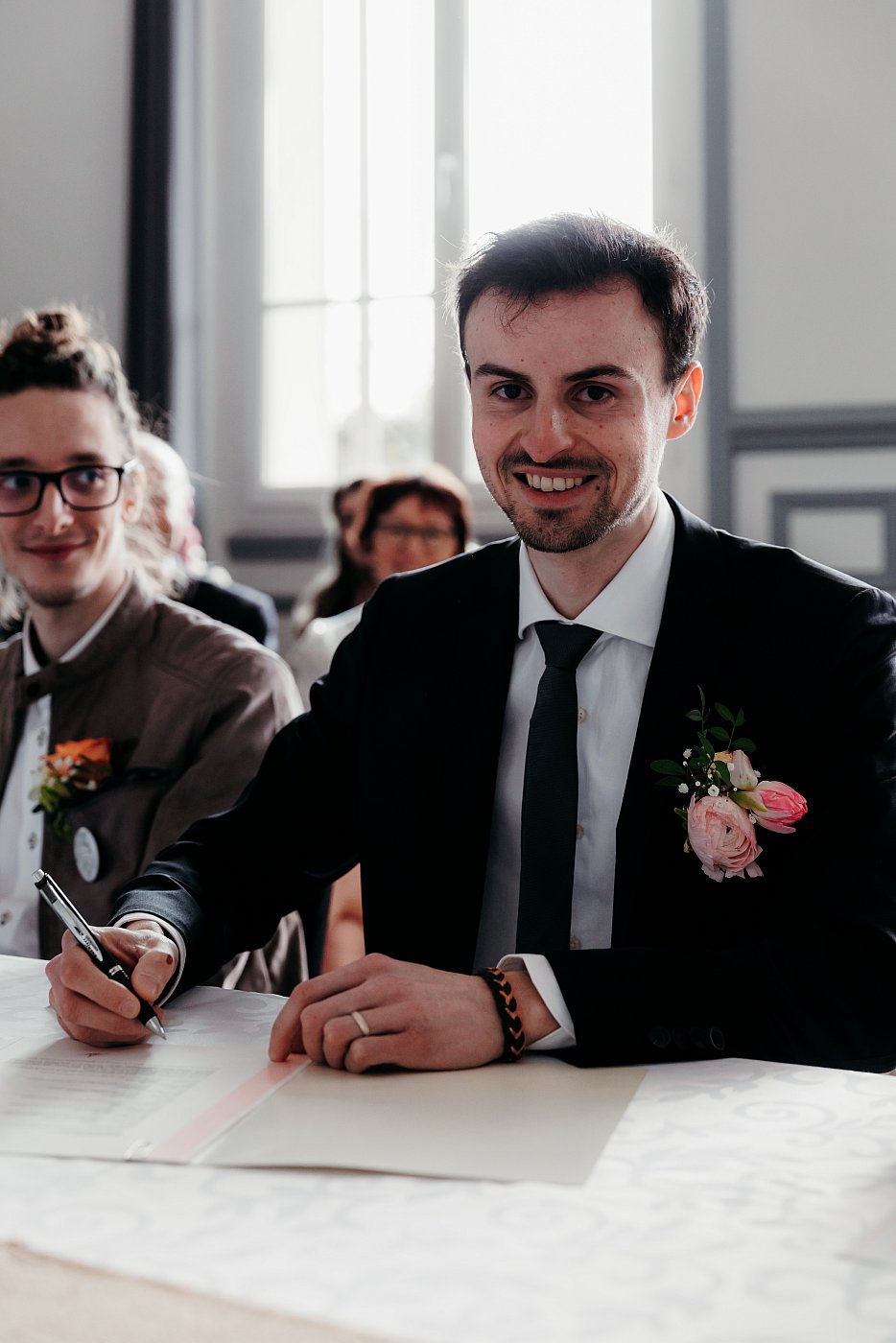 Les mariés ont, chacun leur tour, signé les fameux papiers avant de passer les documents à leurs témoins respectifs.