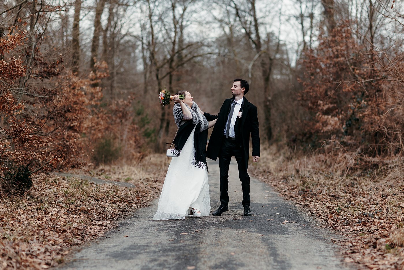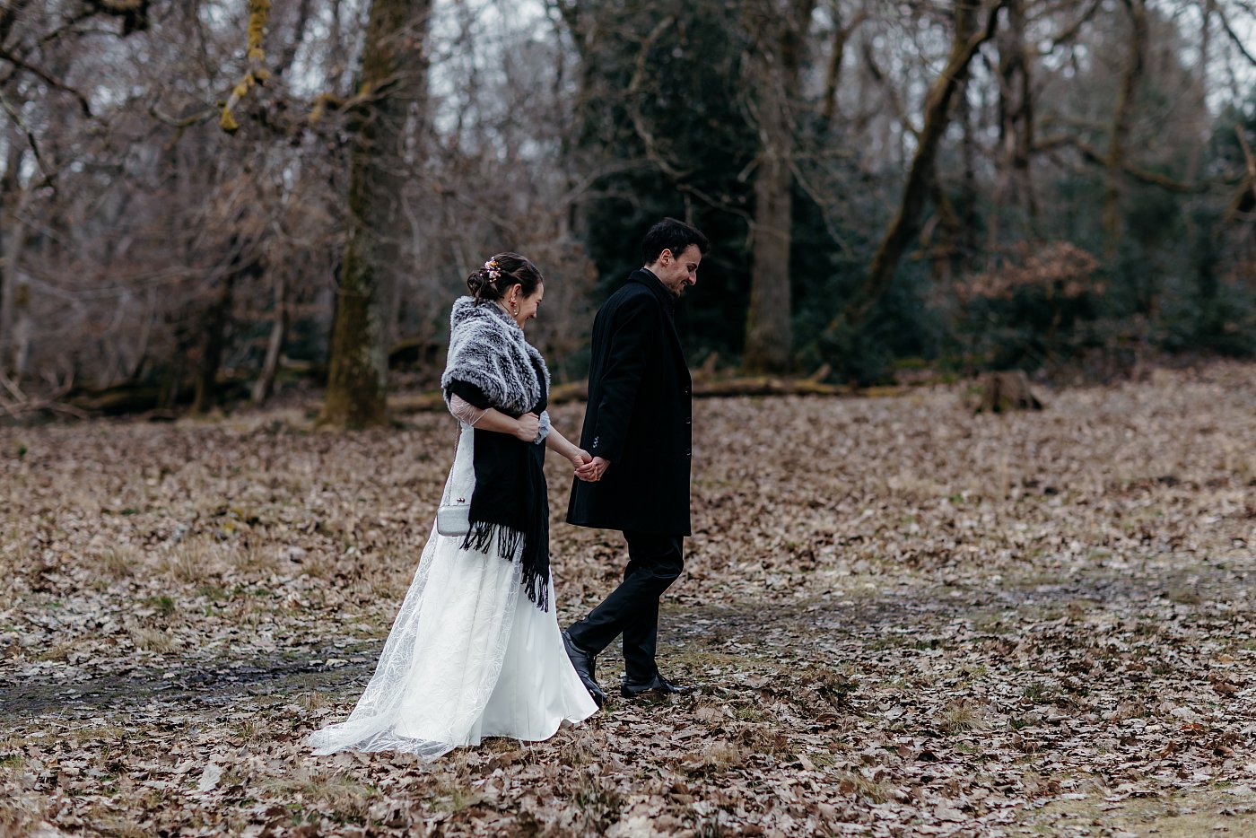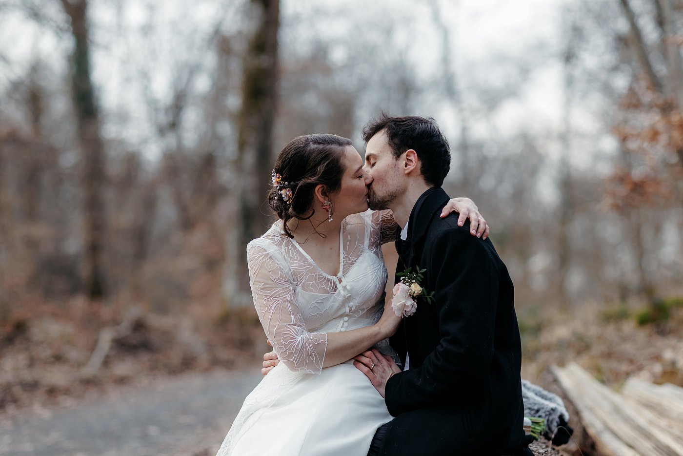 Ni une ni deux, j'appelle les mariés pour leur expliquer la situation et je leur propose que nous nous rendions en forêt pour leur tirer le portrait (en plus ça rime 😅).