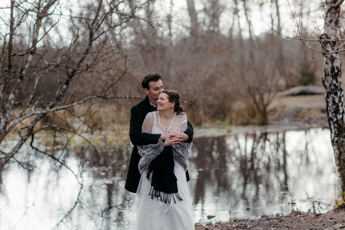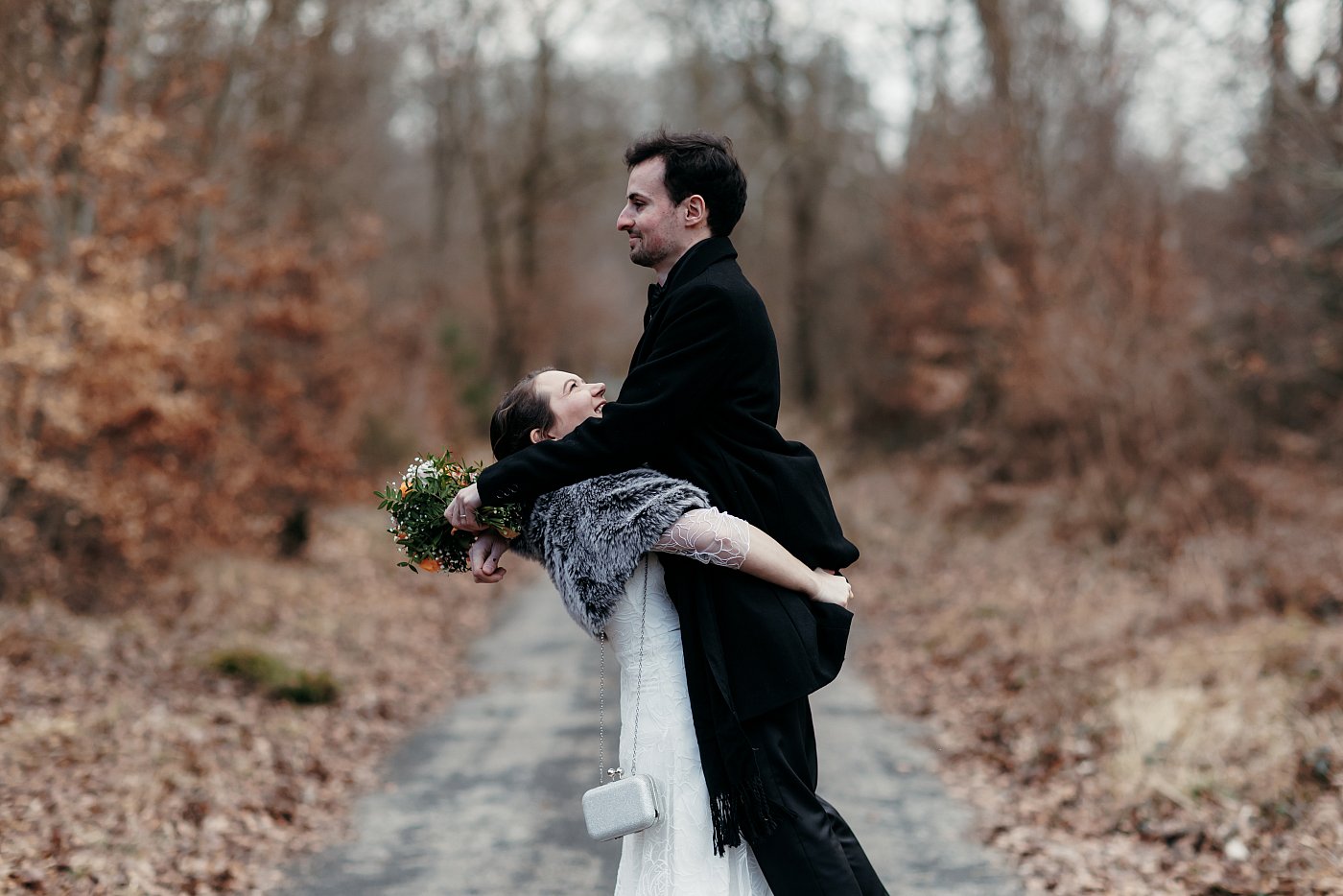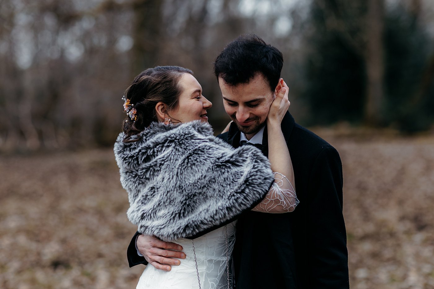 Ni une ni deux, j'appelle les mariés pour leur expliquer la situation et je leur propose que nous nous rendions en forêt pour leur tirer le portrait (en plus ça rime 😅).