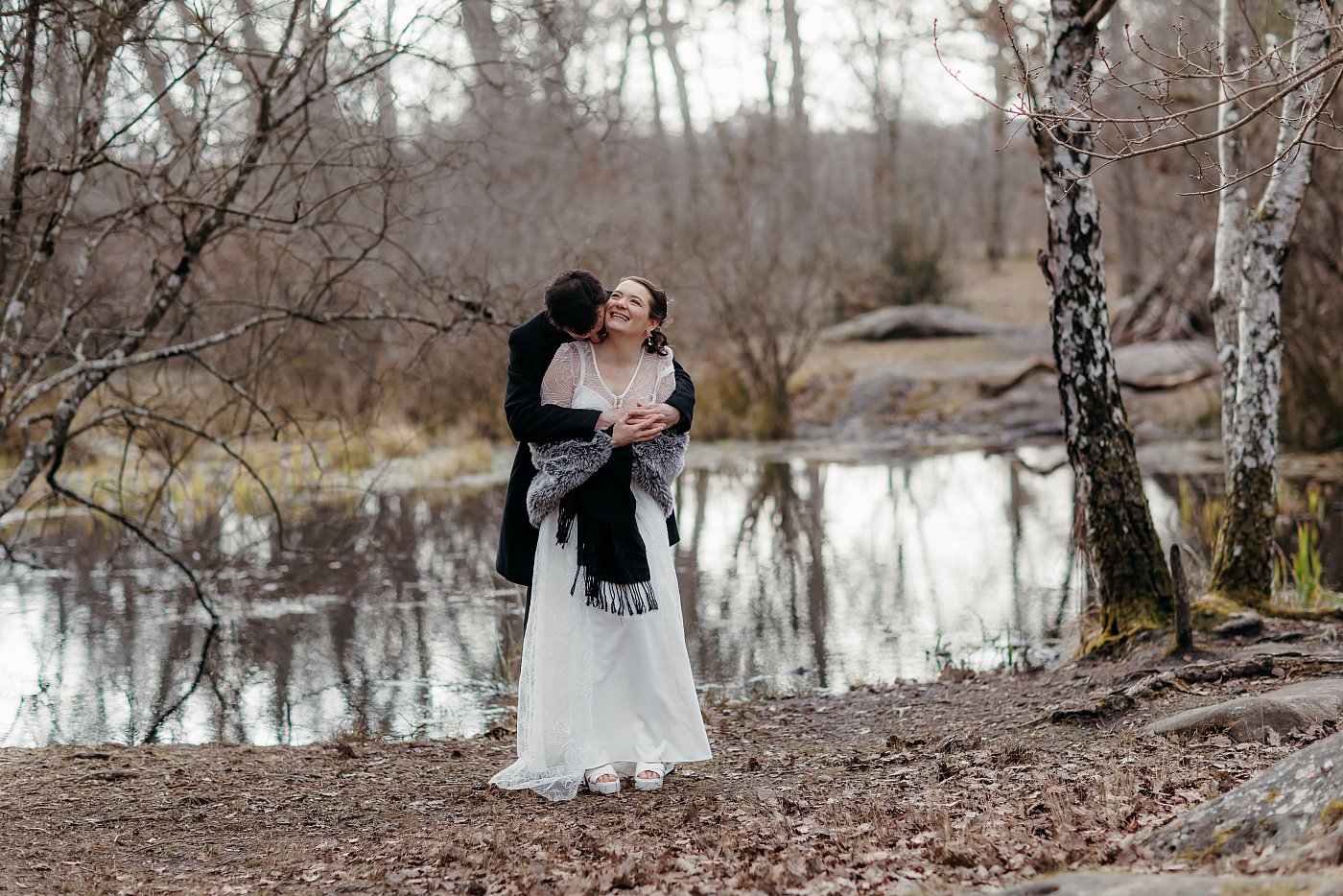 Après nous être bien amusés au bord de la marre aux fées, j'ai décidé de calmer un peu la séance photo de couple en réalisant une série de gros plans du couple et, surtout, de leurs alliances.