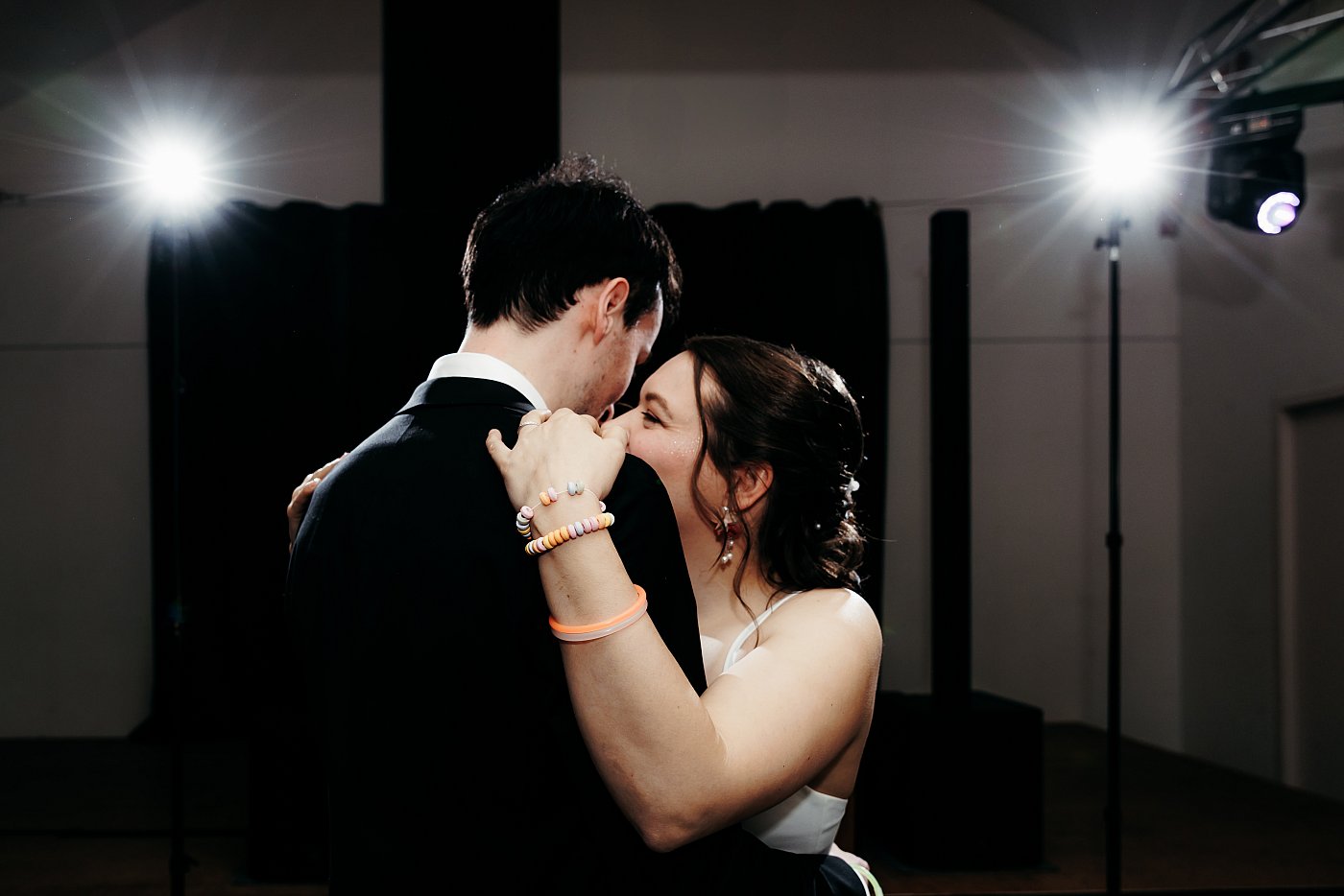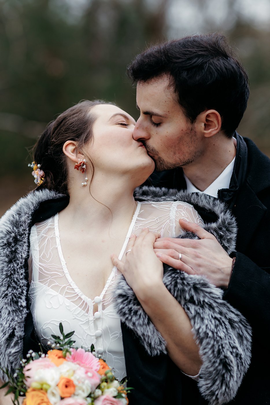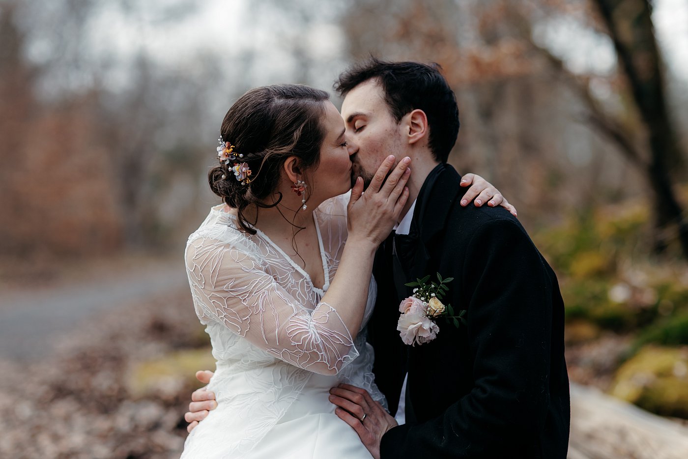 Tant pis, je décide de poursuivre malgré tout en invitant le couple à partager un petit moment romantique, teinté de bisous et de gestes de tendresse. De mon côté, je me tenais de profil afin d'immortaliser ce moment de douceur partagé par nos mariés.