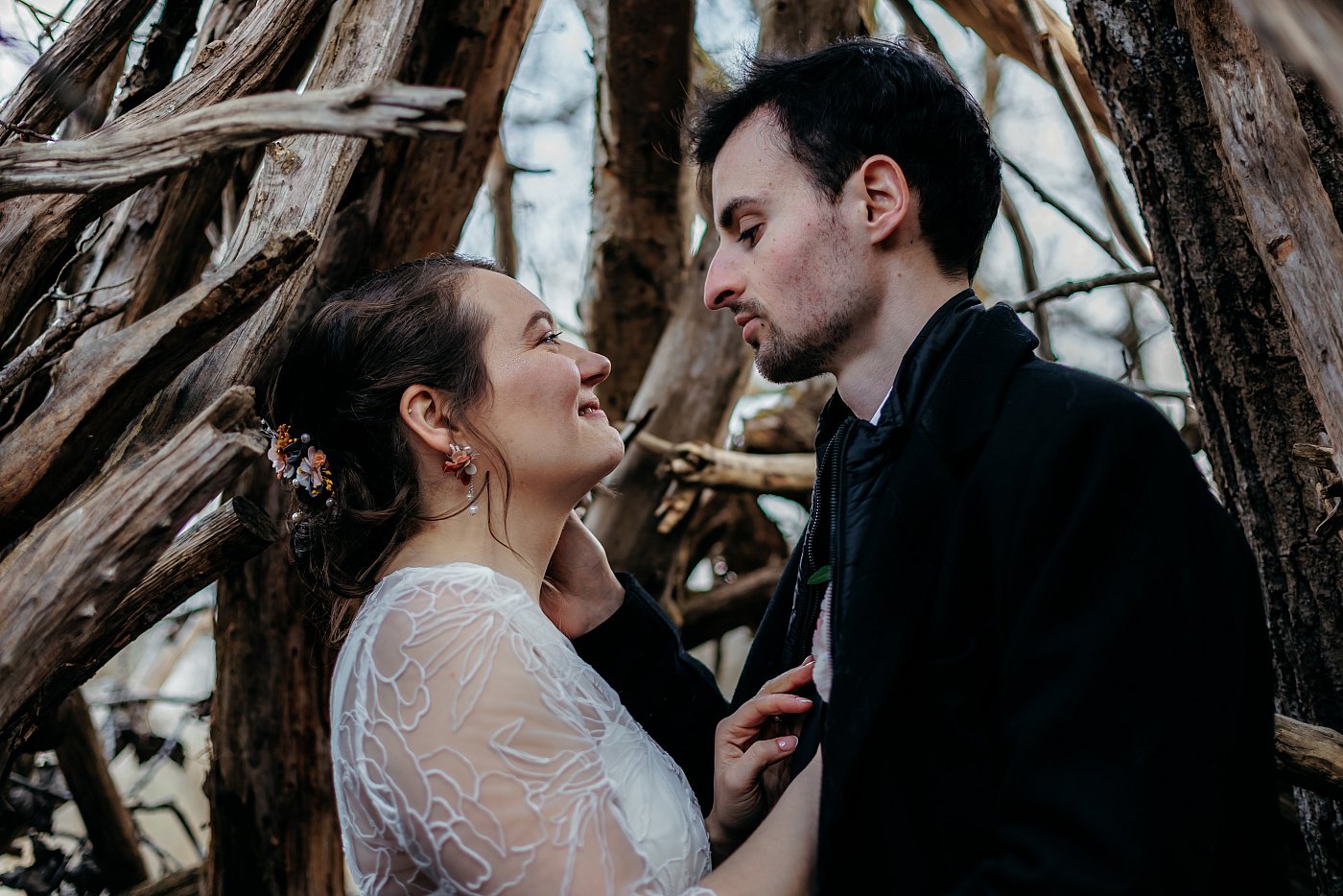 Figurez-vous que cette construction improvisée était suffisamment spacieuse pour accueillir nos deux amoureux. J'ai donc invité le couple à se glisser à l'intérieur afin que je réalise de belles photos d'eux en train de partager un petit moment de tendresse et d'affection ❤️.
