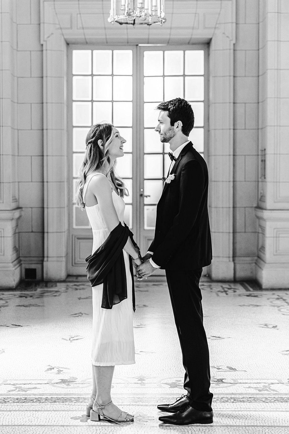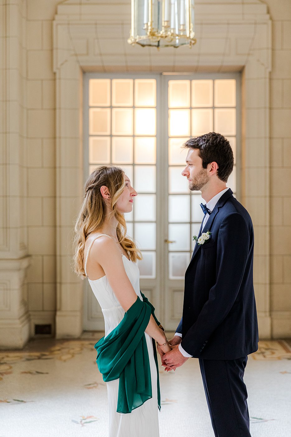 Le long hall au bout duquel se trouve l'entrée de la salle des mariages est également "très graphique" et fera office de décors de choix pour réaliser quelques nouveaux portraits de nos tourtereaux.
