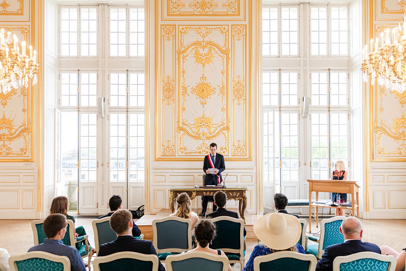 Je découvre donc la somptueuse salle des mariages qui m'étonne par son ambiance luxueuse (dorures sur les murs, moulures au plafond, lustres massifs) et la lumière qui y pénètre au travers des ses immenses vitres.