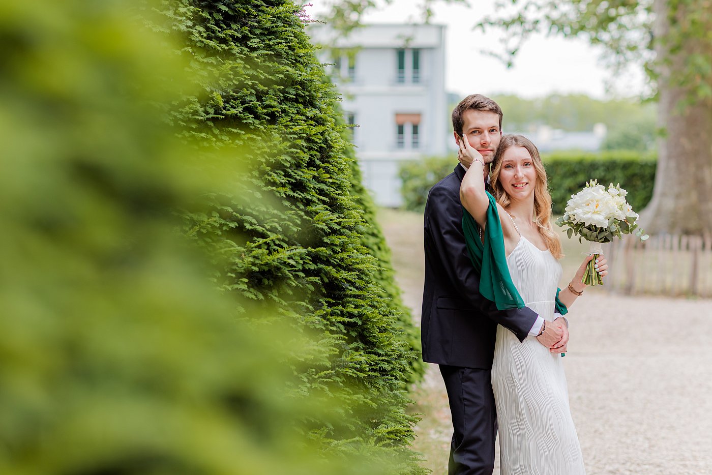 La séance photo de couple dans les jardins de la mairie de Versailles
