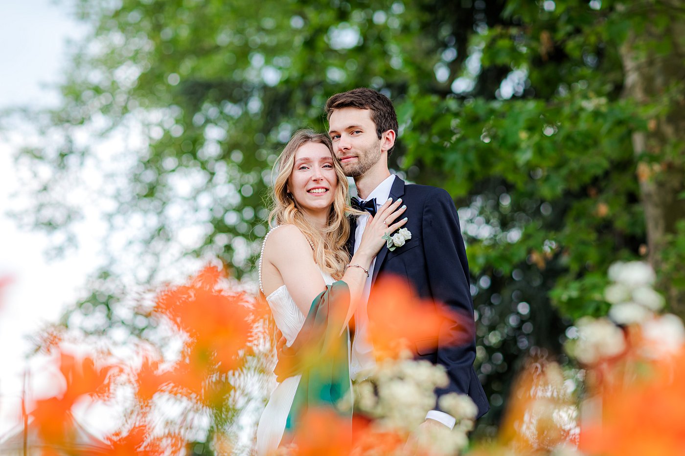 La séance photo des petits groupes avec les mariés étant maintenant terminée, je reste seul dans le jardin avec ces derniers pour réaliser les photos de couple.