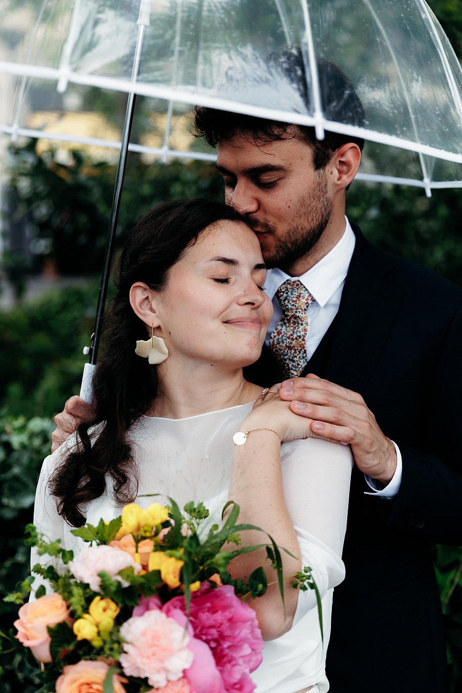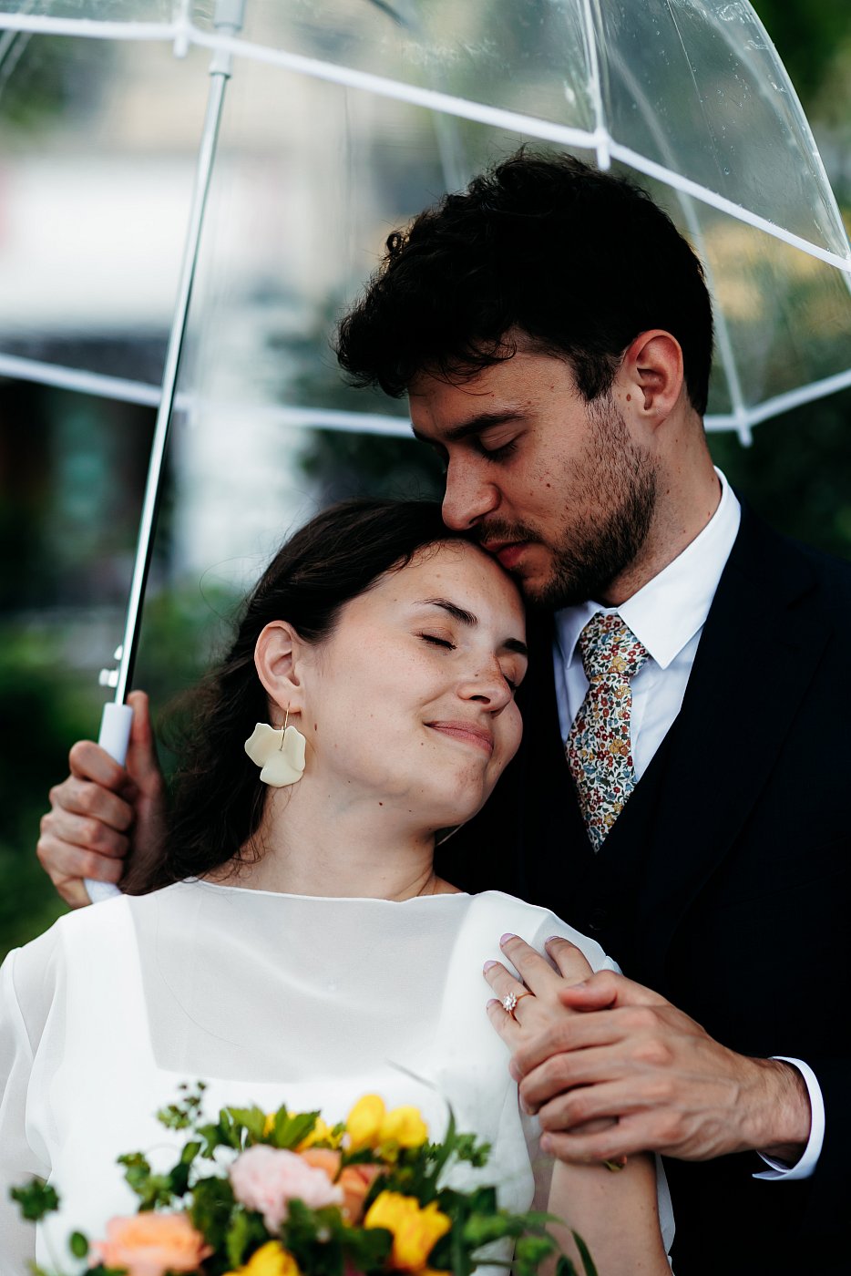 Alors que le futur marié tient toujours le parapluie transparent ☔, je multiplie les différents angles pour obtenir une série de gros plans de toute beauté.