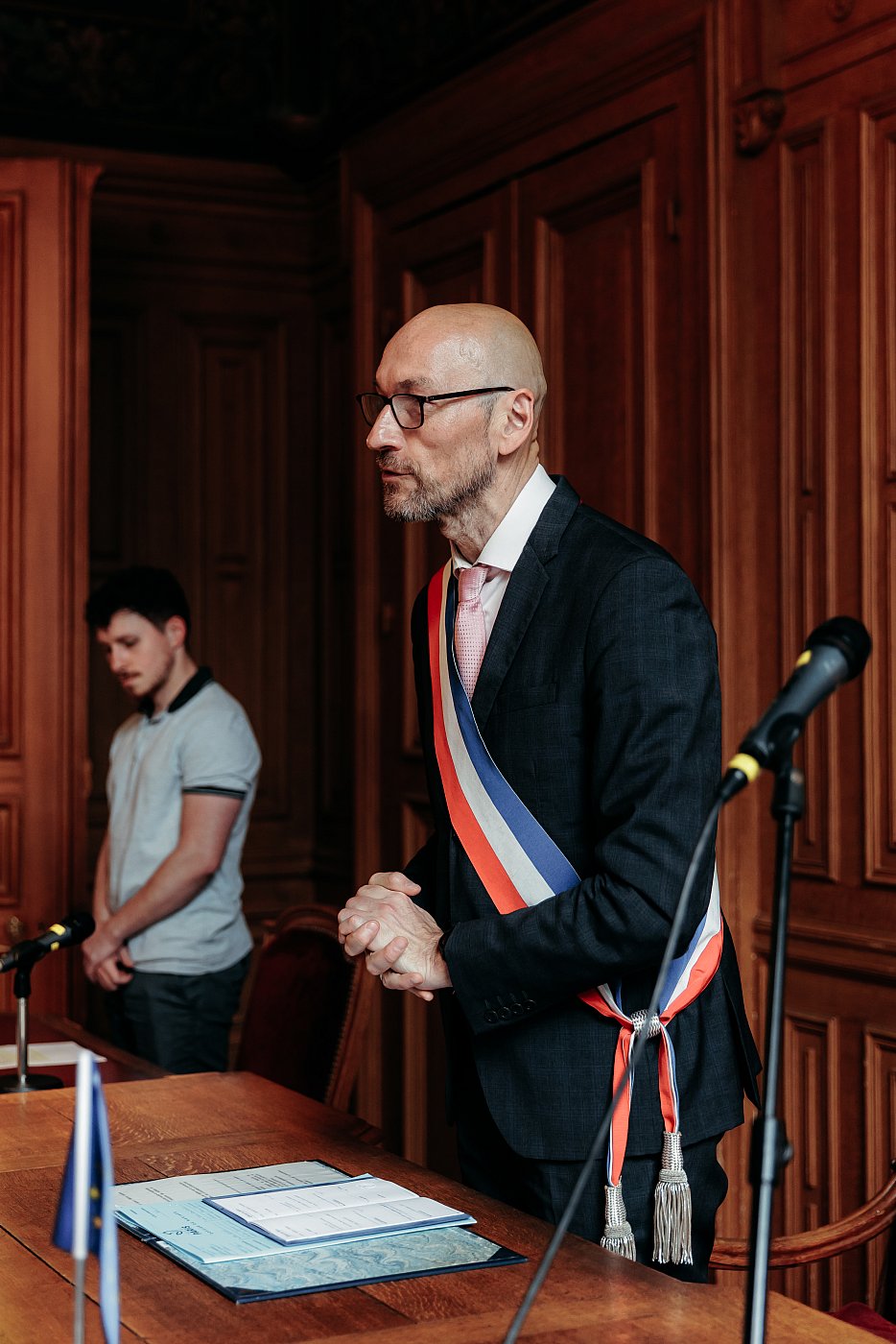 Pendant que les invités rejoignent la salle des mariages, je reste seul avec le couple et j'en profite pour réaliser quelques photos de l'intérieur de la mairie.