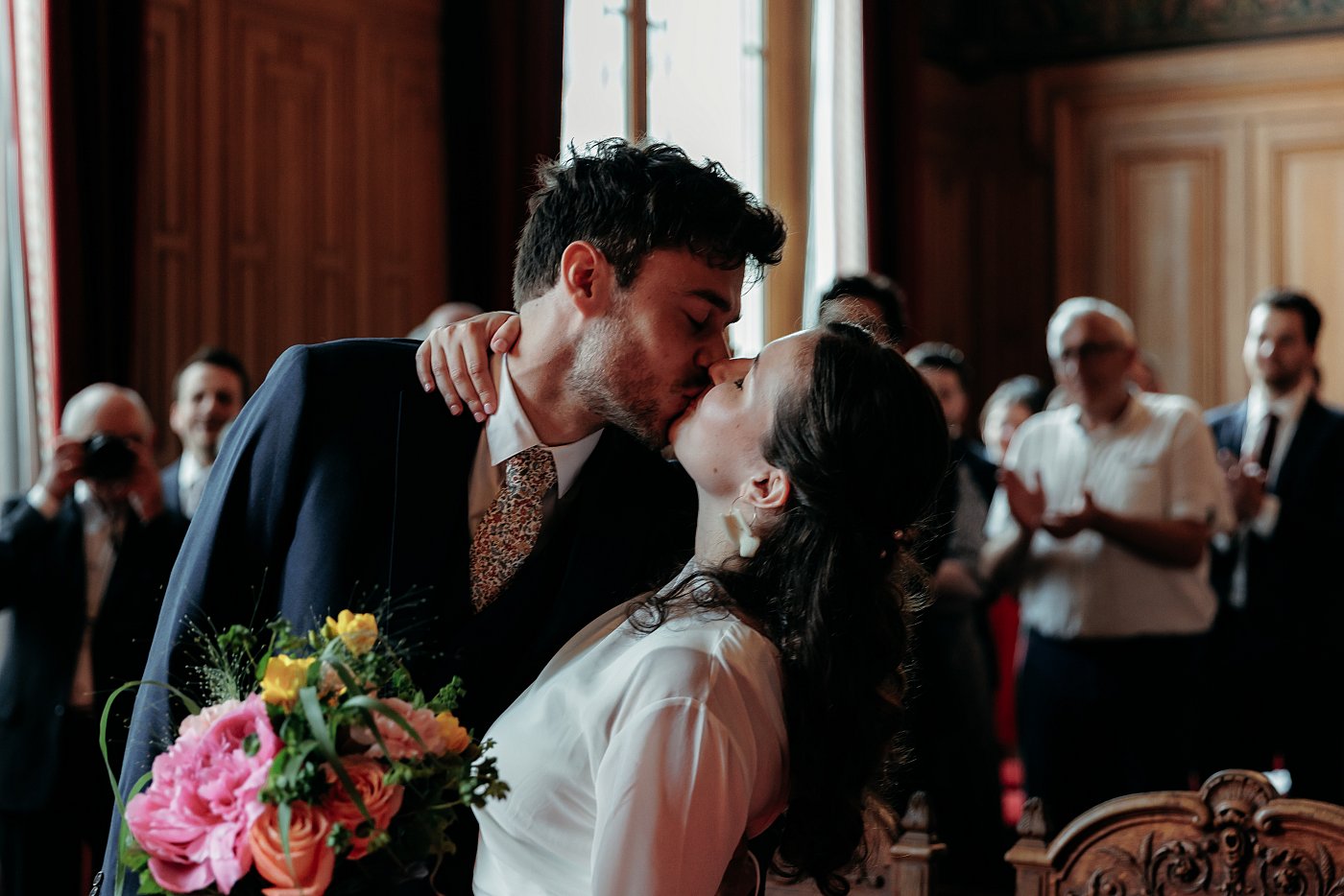 ➡️ Les mariés échangeant un long baiser,