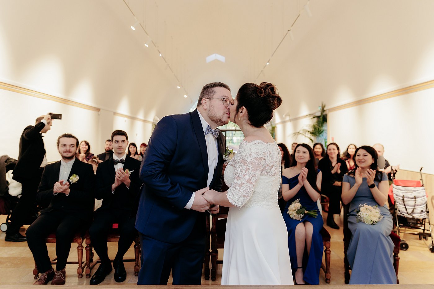 Je ne manque pas, également, de me retourner pour photographier les invités applaudissant l'arrivée des futurs mariés. 👏