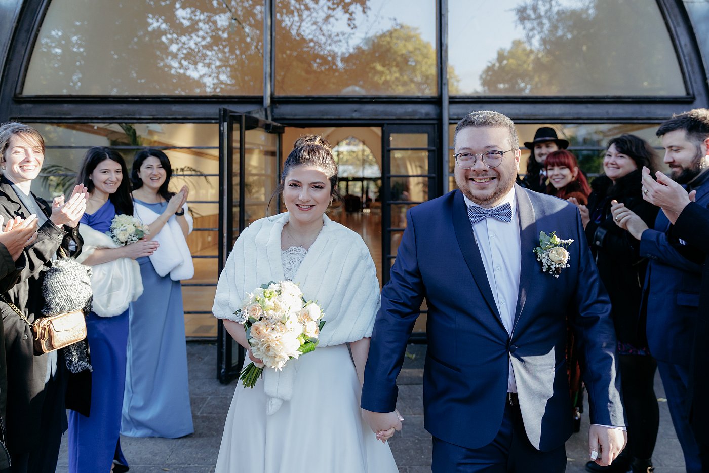 C'est avec un grand sourire aux lèvres et sous un tonnerre d'applaudissements que les mariés sont accueillis par leurs convives.