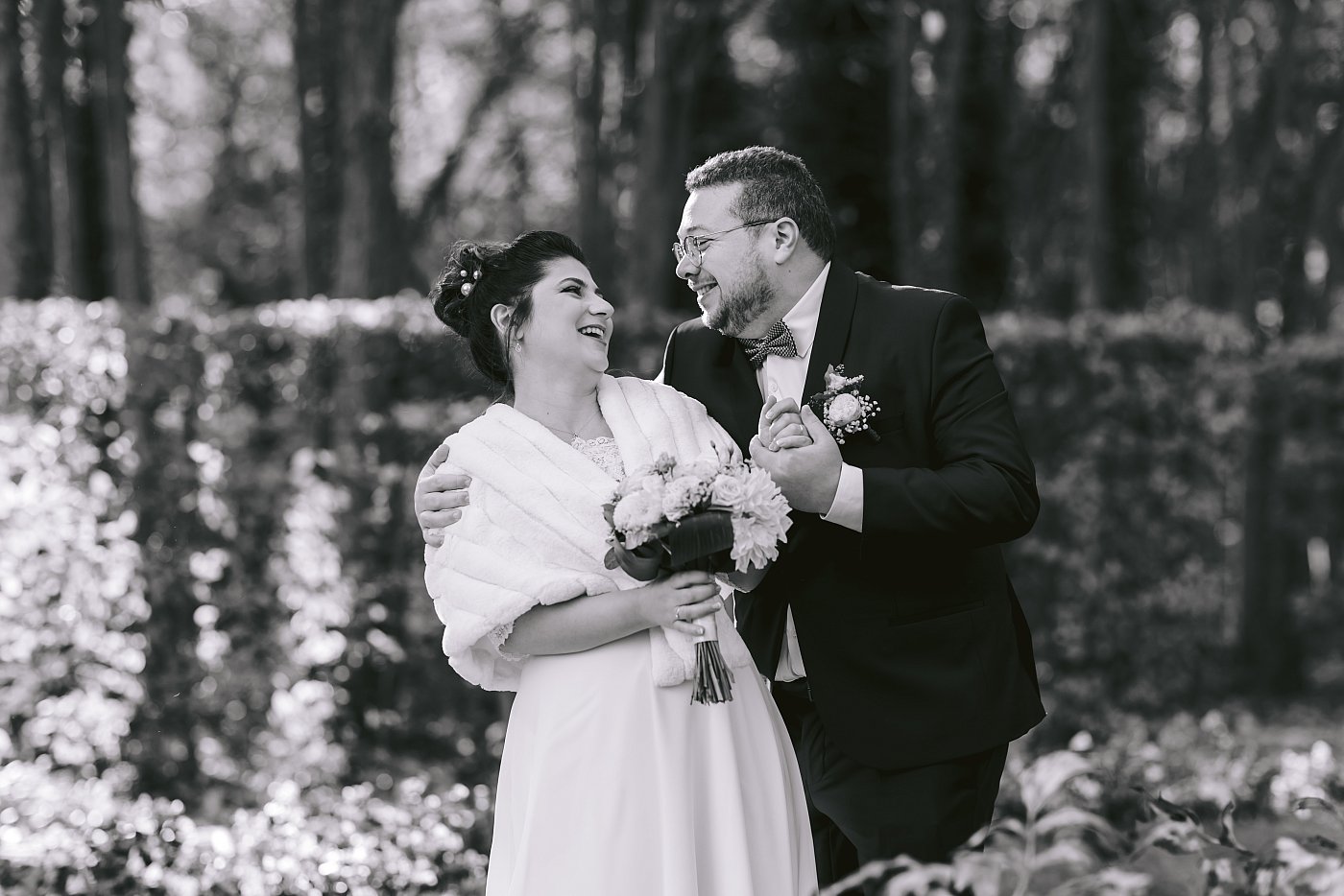 Je décide donc de faire marcher les mariés, main dans la main vers moi, tout en les invitant à se chamailler gentiment.